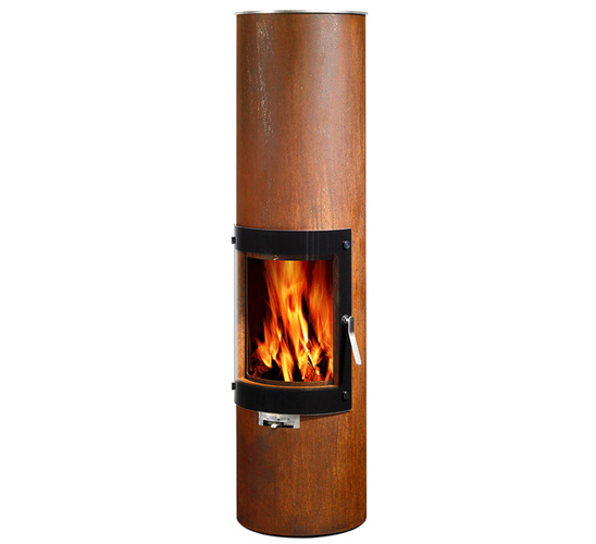 The Rais Pilar Unique Woodburning Stove comes as a hand-treated oxidised and special-coated surface version of the classic Rais Pilar design. The Rais Pilar Unique wood stove is a Classic Design from Danish stove makers, Rais.. With it’s clean lines, it’s a sleek and simple circular fireplace with a large curved glass door. This stove is rotatable to either 70°, 160° or 360° or alternatively it can remain fixed. Available in two heights and with top or rear outlet.