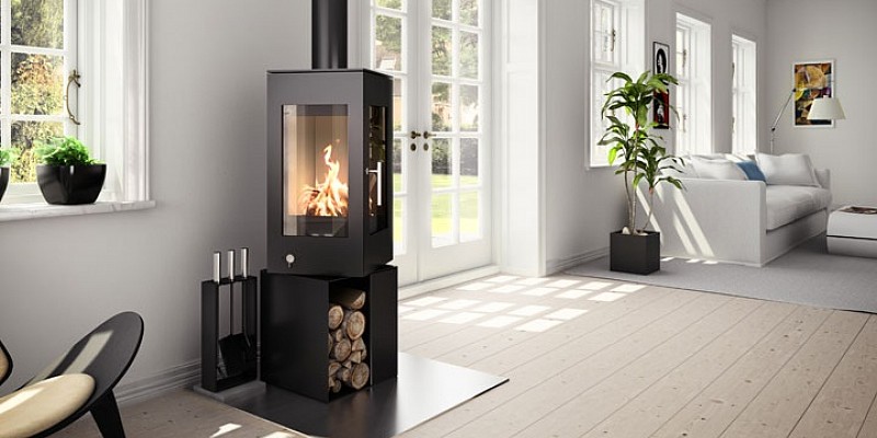 The RAIS Q-bic woodburner has an integrated turntable making this a versatile rotable stove. The RAIS air-supply system brings outside air directly into the firebox for optimal burning of fuel and you get a clear view of the fire through the double-sided glass panes. The base of the wood stove is designed to function as storage for firewood, and is available in two heights – 106 and 127.