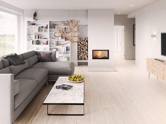 When you open the super minimalistic door, it is pushed aside and disappears. Technically smart, elegant and simple. This stove gives you also snug warmth and has high thermal efficiency.